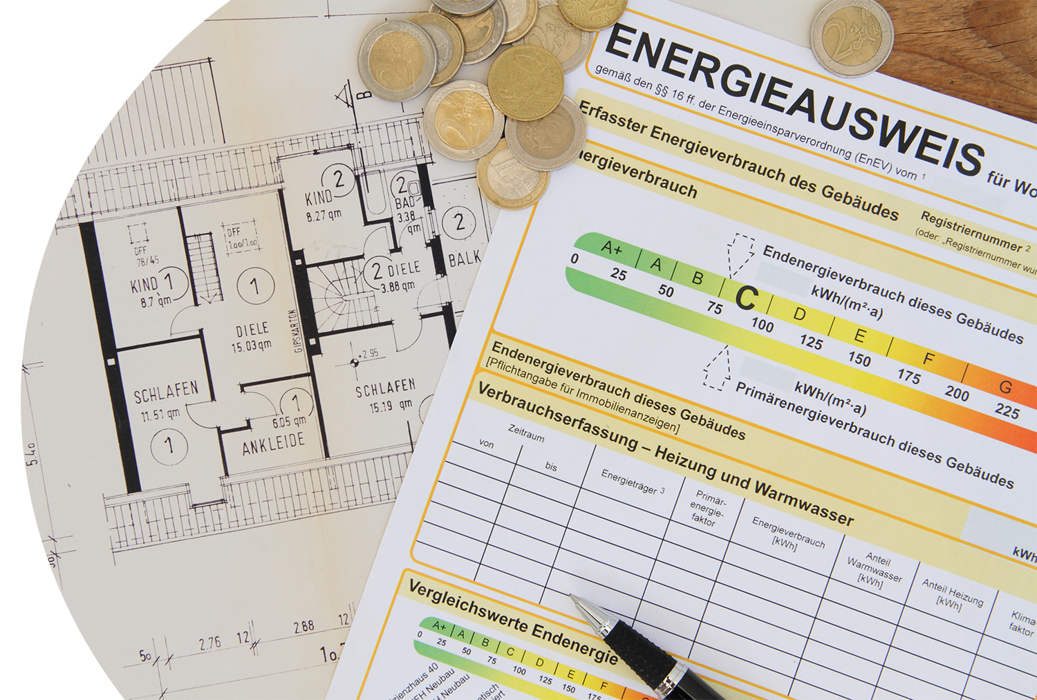 Für den Bedarfsausweis wird der tatsächliche Energiebedarf des Gebäudes ermittelt. Dazu müssen Daten zur Gebäudehülle und Anlagentechnik erhoben und vor Ort ermittelt werden. Vorhandene Bauunterlagen werden zur Beurteilung herangezogen.